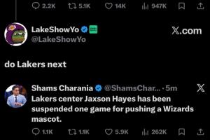 Shams连续爆料 自媒体“哀求”来点湖人的料 Shams:海斯禁赛一场交易截止日临近,市场情绪升温,名记Shams颇为活跃。在爆料科比·怀特的交易后,知名湖人自媒体LakeShowYo在评论中“哀求”:“接下来能不能搞点我湖的料!”Shams也是有求必应,在五分钟后报道