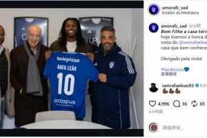 回家看看!莱奥造访儿时母队阿莫拉,获赠10号球衣体育资讯2月7日讯葡萄牙乙级联赛俱乐部阿莫拉更新社媒动态,晒出莱奥造访俱乐部的照片。葡萄牙边锋莱奥造访儿时母队阿莫拉,并获赠阿莫拉10号球衣,俱乐部官方社媒晒出照片,配文:“好孩子总会回家,今天我们有幸