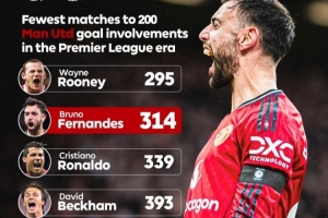 英超时代最快为曼联参与200球榜:鲁尼压B费居首,C罗、小贝在列体育资讯2月8日讯曼联在本轮英超2-0击败热刺,B费取得进球,也解锁了为曼联直接参与200球里程碑。数据统计显示,他也是英超时代第二快达成此成就的曼联球员。英超时代最快为曼联达成参与200球榜:295场