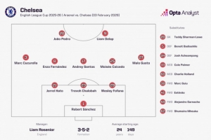 能否克制阿森纳?切尔西时隔78场比赛再次采用三后卫阵型体育资讯2月4日讯联赛杯半决赛次回合比赛,切尔西前往客场挑战阿森纳。赛前首发阵容显示,切尔西本场比赛采用了三后卫阵型。切尔西最近1次采用三后卫阵型还是2024年12月对阵阿斯塔纳,本场比赛是蓝军时隔78