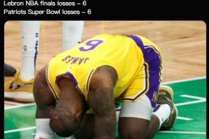 美媒:爱国者超级碗惨败凑齐6败比肩詹姆斯总决赛6次失利体育资讯02月09日讯第60届超级碗,西雅图海鹰29-13击败新英格兰爱国者,时隔12年夺冠,夺得队史第2冠。美媒发推写道:“詹姆斯总决赛失利次数6次,爱国者超级碗失利次数6次。”