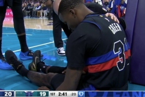 幸无大碍!贾旺特·格林反击起跳时被绊倒重摔 调整后继续作战GIF-贾旺特·格林摔倒